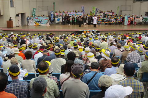 大ホールは1・2階が立錐の余地もなく埋まり、入場できなかった人たちのため、急きょ中ホールに中継画面が設えられた。1500人を超す入場者があったのではないだろうか。イラク派兵、憲法改悪、教育基本法改悪・・・等々と、一人ひとりの暮らしの場にひたひたと歩み寄る戦争の影を感じ始めたことがその背景にあるのかもしれない。