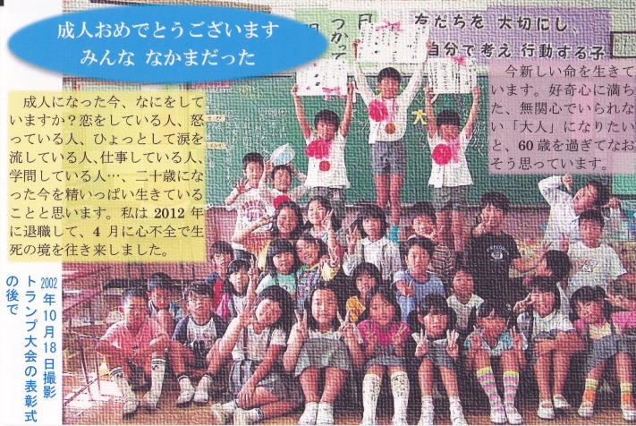 神奈川の養護学校をこの春退職した友人から電話が掛かった。妻の教職時代の先輩でもあり、結婚以来家族ぐるみの付き合いをさせてもらっていて、我が家の子ども達も物心ついたときから、彼女を「カトバー」と親しみを込めて呼んでいる。