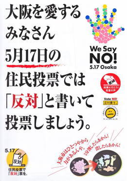 大阪市は私たちの生活、暮らしの原点です。なくしてはいけません。はっきり「反対」と書きましょう! We say No!