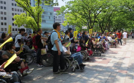 障害者からのマイクを通した、怒りのこもった、一人ひとりの話を聞きながら、法律や条令、制度、施策の網の目の中で生きる障害者の日々の暮らしがまざまざと伝わってきました。その網の目と暮...らしが重なる一つひとつの結ぼれ(結び目)をつくるのに、実に数十年に及ぶ障害者の生活と運動の歴史があったのだと思われてきます。