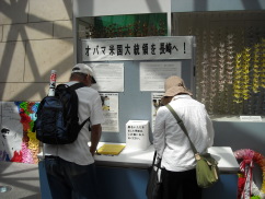 最後に参加者で市役所に向かって「反対」と書いた紙を掲げてシュプレヒコール。「あいにく」(?)市長は不在。公務をそっちのけで終日市内を宣伝に回っています。