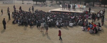 FESの活動もあわただしさを増していく。5・6年生を動員して運動場の真ん中に舞台を作る。未成年の主張、歌や踊りの参加募集の手紙を配り、応募用のボックスを取り付ける。オープニング、エンディングの打ち合わせと練習等々、毎日の会議が続く。どの顔も嬉々として、いっかな疲れを見せない。