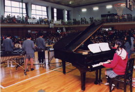 「全校合唱したいなぁ」「FESのみんなで演奏もしようや」、言うが早いかその日から音楽室での練習も始まった。準備室の隅にほこりをかぶって眠っていたドラムセットまで引っ張り出して、ちょっとしたミュージシャンの集団が出現した。その多彩ぶりに改めて驚かされてしまう。