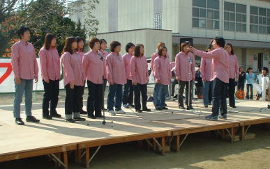 実行委員会FESの人たちが、作詞作曲してテーマソングを作り全校合唱した。