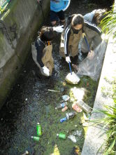 ポスターのグループは、自治会長さんの家を回り、掲示板に張らせてくれるように頼みに行く。ゴミ箱のグループは、学校中を捜し回って材料を集め、技能職員さんにも手伝ってもらい「成美小学校4年生」と大書した立派なゴミ箱を2つも作った。 掲示板や川沿いのフェンスにポスターを張ったり、会長さんと一緒に手作りのゴミ箱を運び、取り付けたりした。