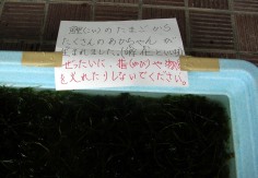 学校で用意した水槽に入れる。いったい何個あるのだろう。何千個、かも?