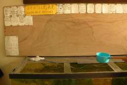 コイとのお別れの仕方をどうするか、1匹ずつを古川に還していけないか、そのために「そうめん流し」のような道具が作れないか等々にぎやかに話し合いが持たれた。それを聞きつけた水辺クラブのおじさんが、なんと雨どいをつないで、まさに「そうめん流し」のような道具を作ってくださった。