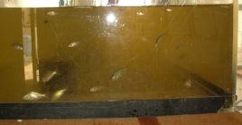5月3日から6日までの連休が終わり5月7日の朝、校門を入るとすぐに見えるように水槽を出して置いていた。