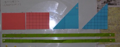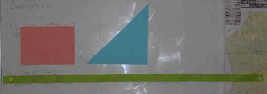 ・Bを三角形の辺に合わせて切って重ねて行き、はみ出した「等しい辺が1cmの三角形」を一つ一つ切り取って、最後に合わせて比べた者。