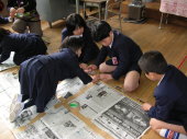 折ったり、切ったり、線を引いたり、色をつけたりしながら、班で活発に話し合っている。