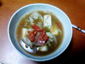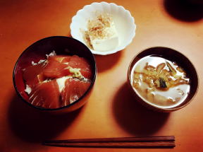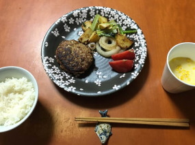 ▼5月31日 野菜炒め(残念ながら写真を撮るのを忘れてしまいました) ▼6月1日 マグロの山掛けヅケ丼、最近凝っている野菜の具だくさん味噌汁 ▼6月2日 ハンバーグステーキ ▼6月3日(外食) 研修会打ち合わせの後スタッフで お好み焼き。この時のトマト焼きそばが旨かった。▼6月4日 冷凍庫の隅に眠る「ウナギのかば焼き」を発見、うな丼と、前日の「トマト焼きそば」をヒントに、トマトを煮込んだ具だくさん味噌汁。これがとてもおいしくできました。この日は娘たちも沖縄に旅立ち、一人ぼっちの夕食となったので、帰ってきた妻にも食べてもらおうとパックに入れて冷蔵庫にしまっています。